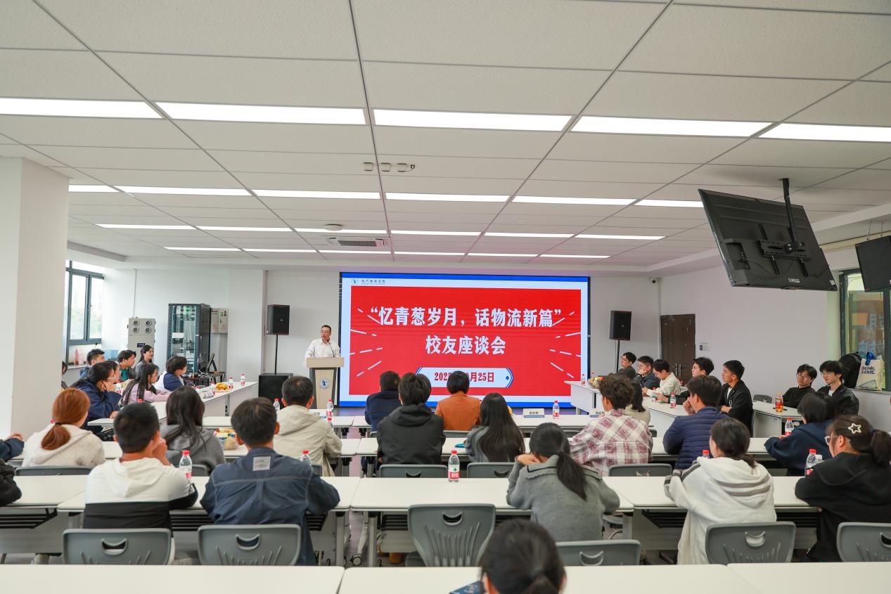 随后以“忆青葱岁月,话物流新篇”为主题的现代物流学院2025年校友座谈会在控制科技楼4306教室隆重举行。现代物流学院全体领导班子与教师代表,同校友们欢聚一堂,气氛温馨而热烈。