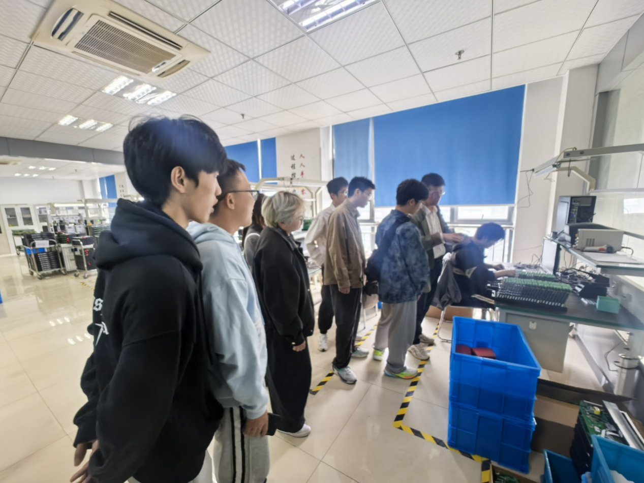 智能控制技术专业师生还走访了合作企业杭州大光明通信系统股份有限公司。本次活动聚焦于让学生“零距离”接触未来职场。同学们深入企业的生产调试、组装测试及产品研发等一线部门,实地了解了嵌入式系统开发、产品调试与维修等岗位的完整工作流程。更让人倍感亲切的是,9名已在该企业测试、维修、研发等岗位成长为业务骨干的毕业校友,组成了“学长导师团”,为学弟学妹们现场讲解操作要点,分享成长心得。这种“校友传帮带”的现场教学模式,极大地增强了新生对专业的认同感,也为他们规划大学学业提供了最真实的参考。