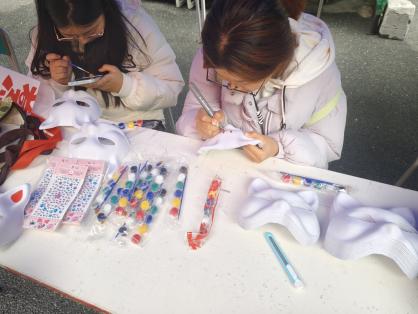 活动中,大家拿起画笔,在空白面具上尽情勾勒、肆意上色:有人描绘“外在的面具”,嘴角上扬的笑脸旁,藏着一颗小小的疲惫星星,诉说着日常的隐忍;有人勾勒“内在的真我”,飞鸟、云朵铺满面具,写下“想自由”“敢做自己”的心愿,袒露内心的柔软与渴望。绘制完成后,同学们主动与同伴分享面具背后的故事,在倾听与倾诉中相互理解、彼此包容,渐渐明白:每个人都有“面具之下”的模样,真实从不可耻,反而格外珍贵。