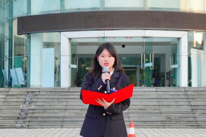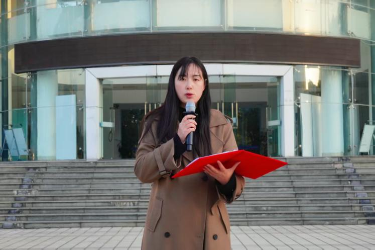 学生代表肖娜发表国旗下讲话,她指出:“立身以立学为先,立学以读书为本。” 学风是校园的精神脊梁,是治学修身的根本遵循,更是青年学子逐梦前行的力量源泉。眼下,学校“教风学风月”正蓬勃开展,这既是对优良治学传统的传承,更是对我们青年学子的殷切期许。肖娜同学也向全体同学发出三点倡议: 1.守课堂之礼,筑牢求学根基。以“不迟到、不缺勤”为行为准则,保持教学环境整洁,课上专注听讲、积极互动,让每一堂课都成为成长的阶梯;2.崇务实之风,锤炼过硬本领。课后主动梳理知识、潜心钻研,遇到难题虚心求教,在独立思考中提升能力,在求真务实中积累底气;3.聚同行之力,共筑优良生态。发扬互助精神,在交流中分享心得,在竞争中共同进步,让勤学善思成为校园新风尚,让团结协作成为成长正能量。