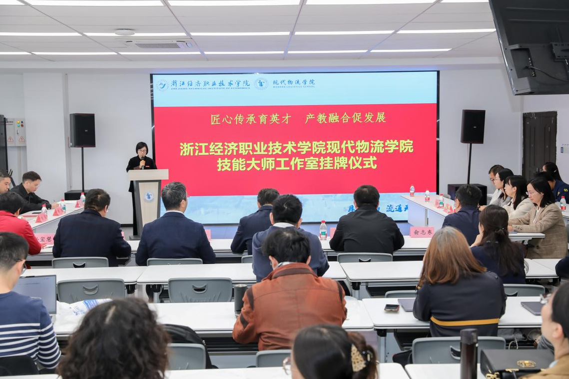 在授牌仪式环节,“刘晨技能大师工作室”正式设立,该工作室是浙江省首家供应链领域的省级大师工作室,具有开创性和标杆意义。同时,“商磊技能大师工作室”、“唐玉藏技能大师工作室”也同步启动。三大工作室的落地,标志着校企合作迈入实体化、平台化新阶段,未来将在技术攻关、师资培育、学生实践等方面发挥重要载体作用。